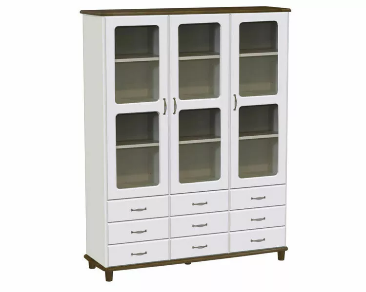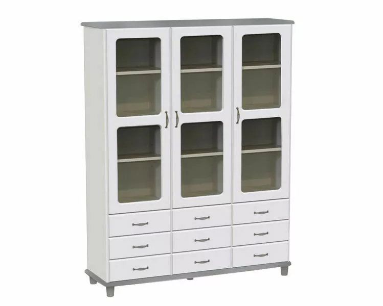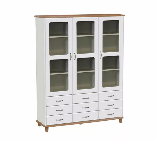 Näyttävässä Aino 140-309 vitriinissä on 3 lasiovellista kaappia välihyllyillä sekä 9 kpl tilavia vetolaatikoita. Aino vitriiniin saat tärkeimmät esineesi kauniisti esille.