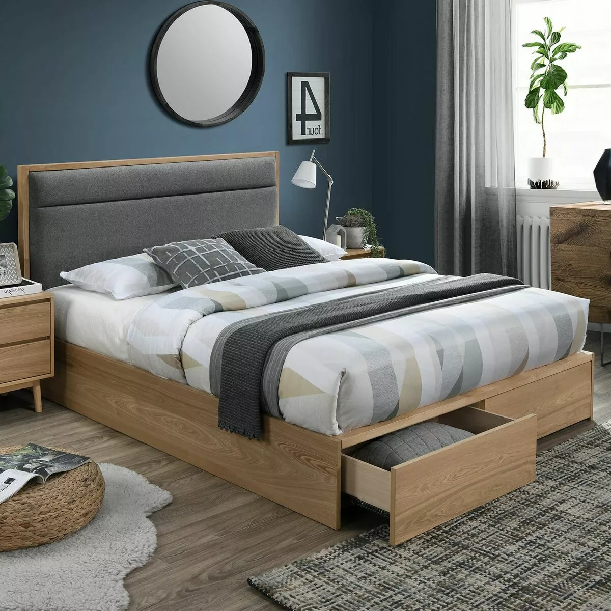 Kaunis, tammen värinen Blossom sänky kahdella tilavalla vetolaatikolla. Laatikoihin voit kätevästi sijoittaa peittoja, tyynyjä tai muita tarpeellisia tavaroita. Pehmustettu päätyosa kruunaa erittäin tyylikkään kokonaisuuden.