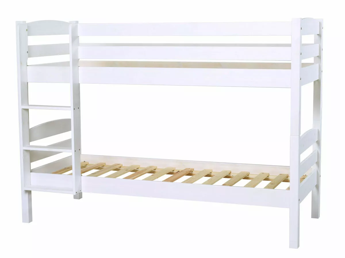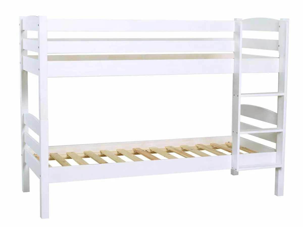 Tukeva ja turvallinen Nukkumatti-kerrosänky on valkokuultopetsattua mäntyä. Sänkyyn käy normaali 80×200 cm patja.