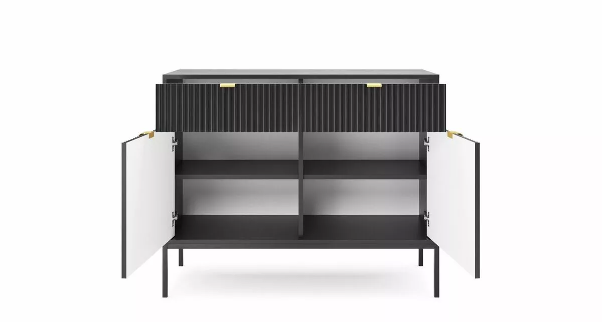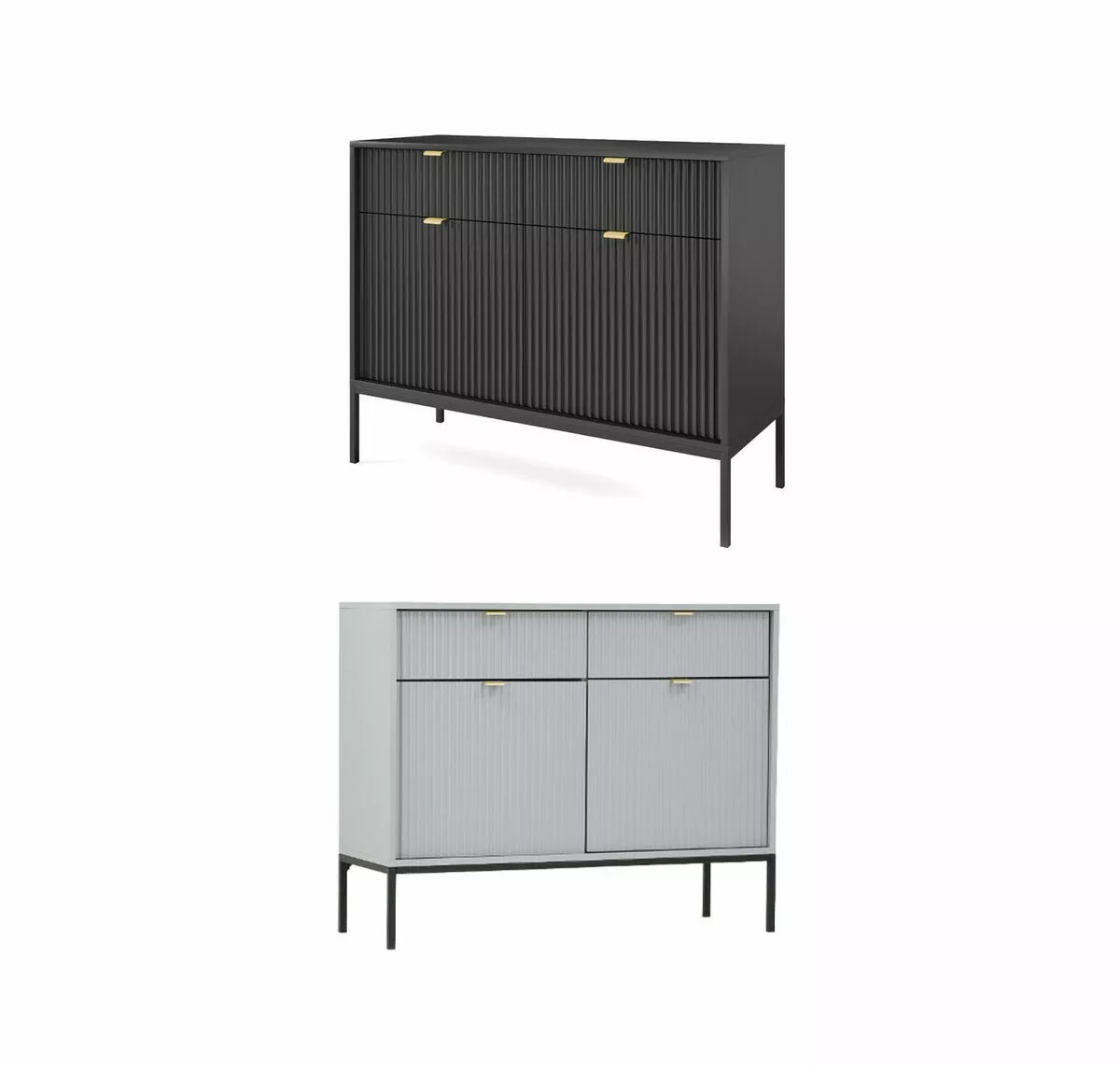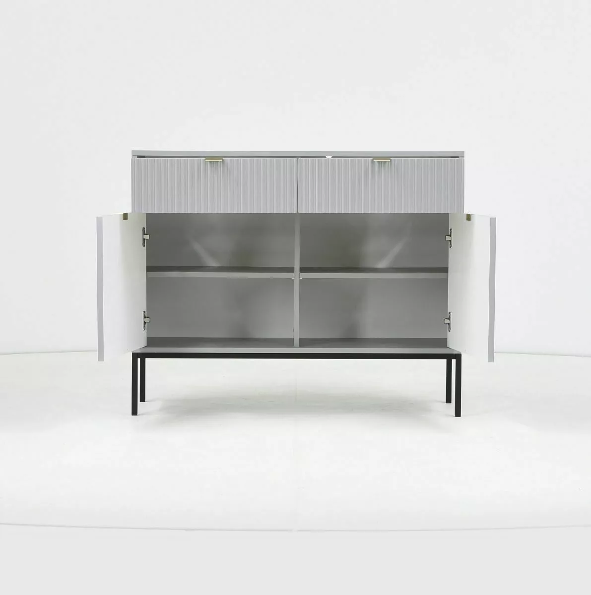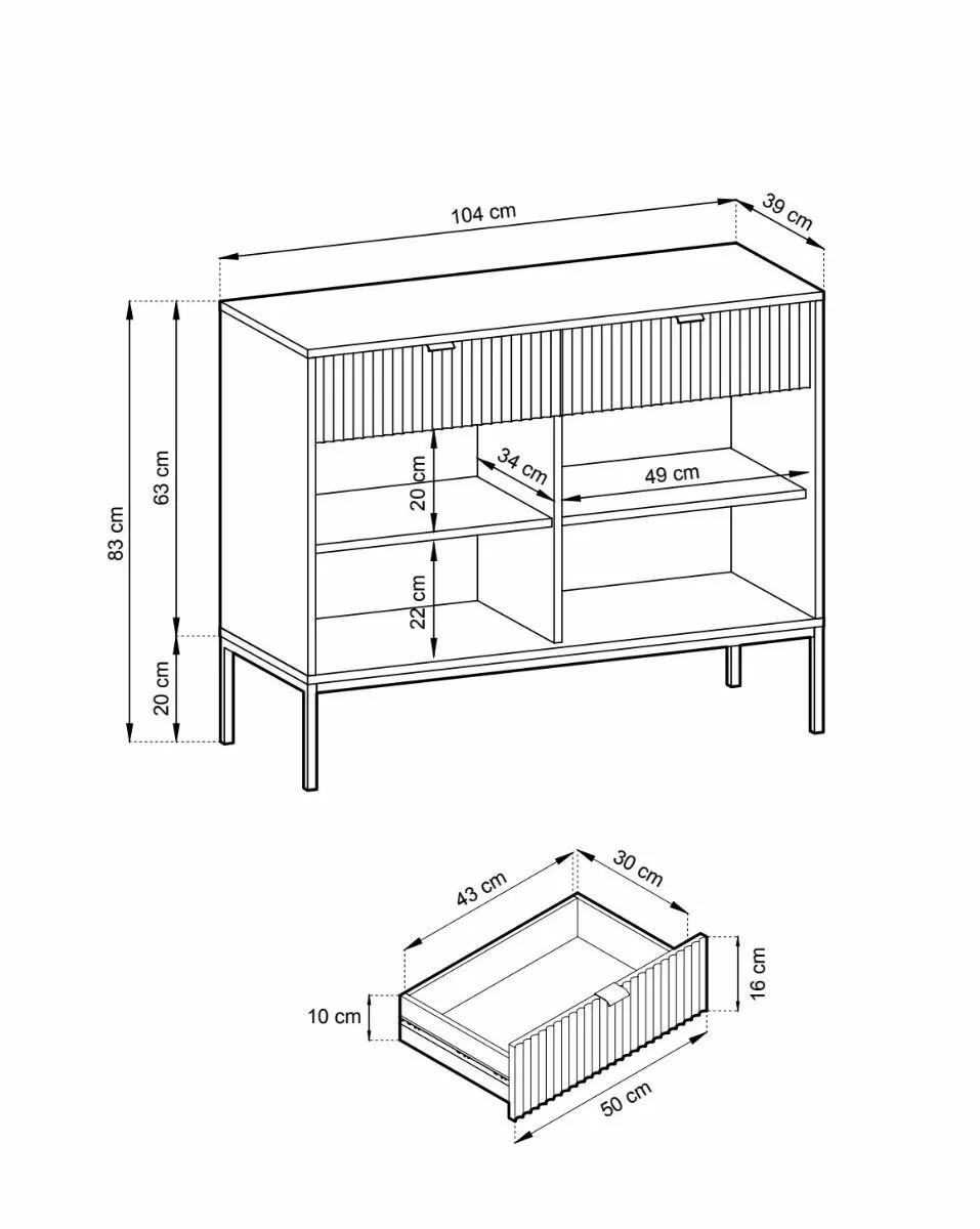 Tyylikkässä ja sirossa Latte lipastossa on kaksi vetolaatikkoa sekä kaappi. Kaapissa on väliseinän molemmin puolin yksi välihylly.