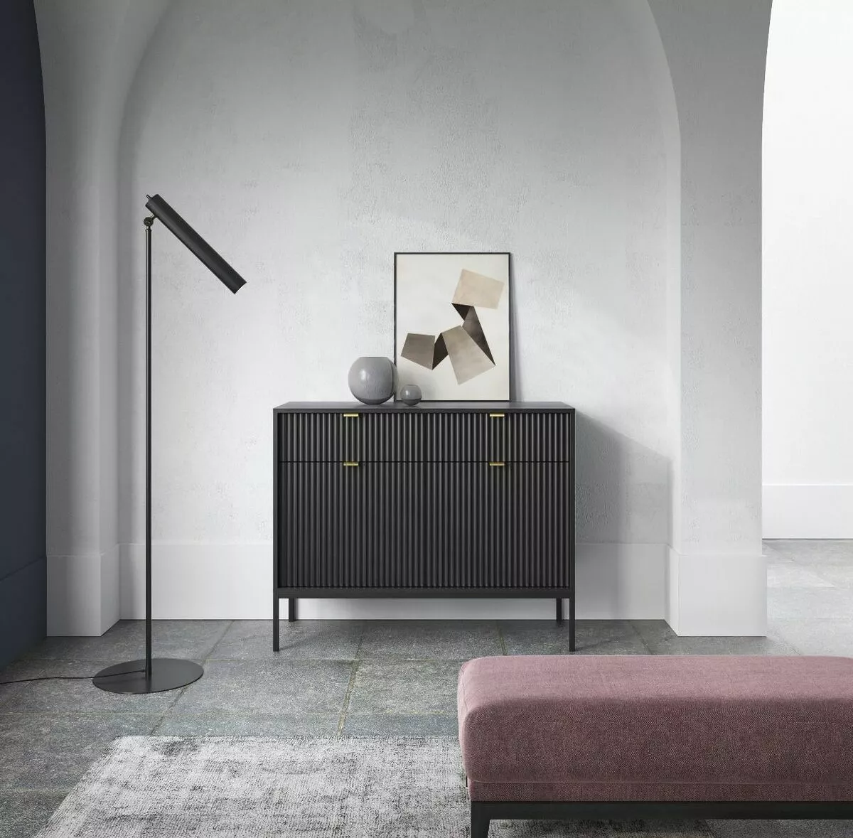 Etusarjoissa olevat urat antavat tv-tasolle kauniin, yksilöllisen ilmeen. Saatavana mustana ja greigenä.
