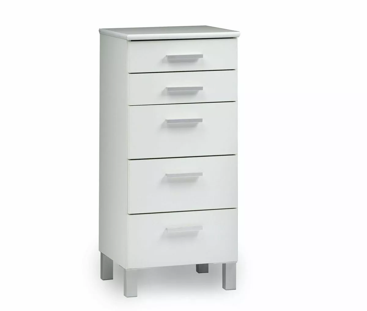 Tyylikäs Rooma-sarjan lipasto viidellä vetolaatikolla. Lipasto on valmistettu kotimaassa ja materiaalina on käytetty laadukasta kalustelevyä.