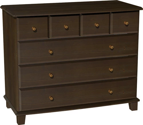 Materiaali pähkinänruskea massiivimänty, vetimet ja laatikoiden liukukiskot metalliset.