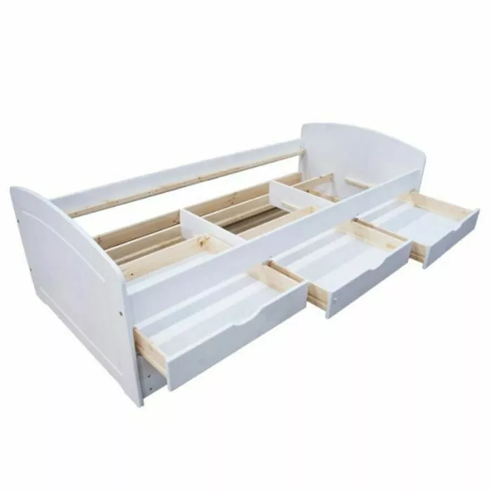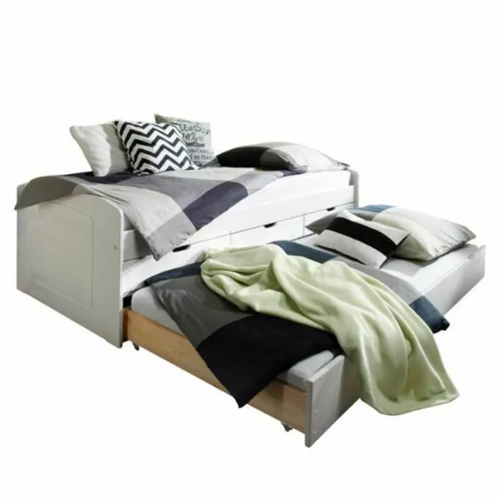 Massiivimännystä valmistettu Twin sänky varavuoteella sekä kolmella vetolaatikolla.