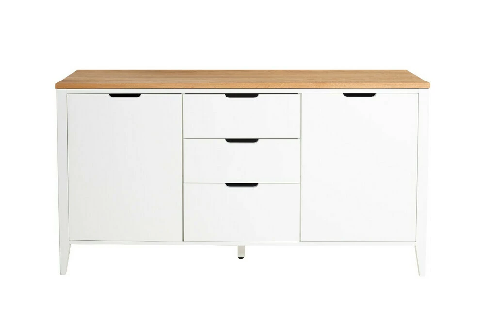 Aalto tuotesarjan näyttävässä senkissä on 2 ovikaappia ja 3 tilavaa vetolaatikkoa. Kaapeissa on 1 irtohylly.