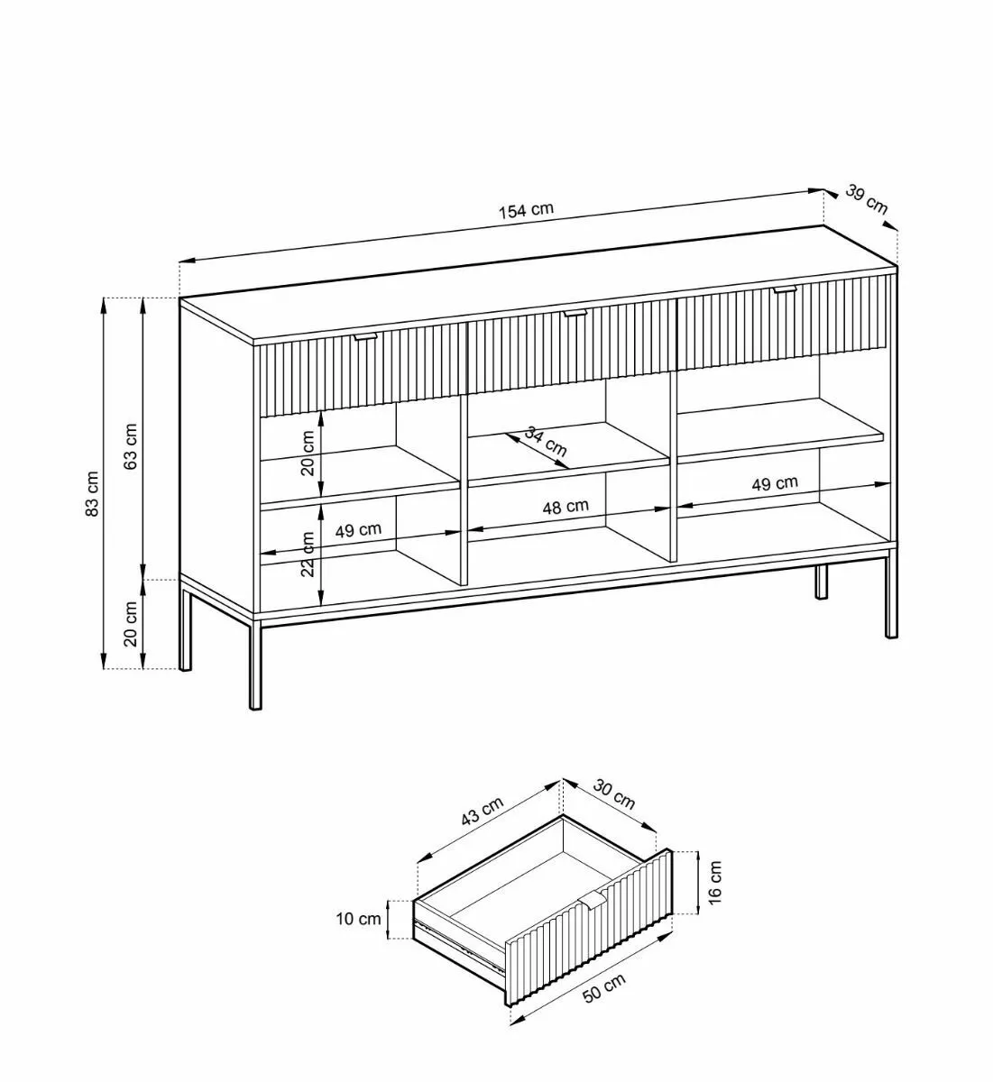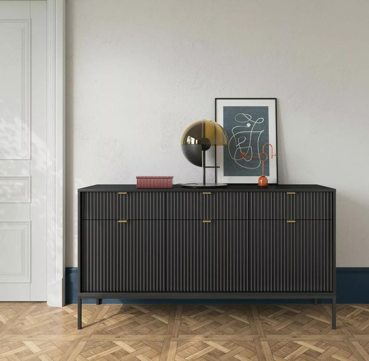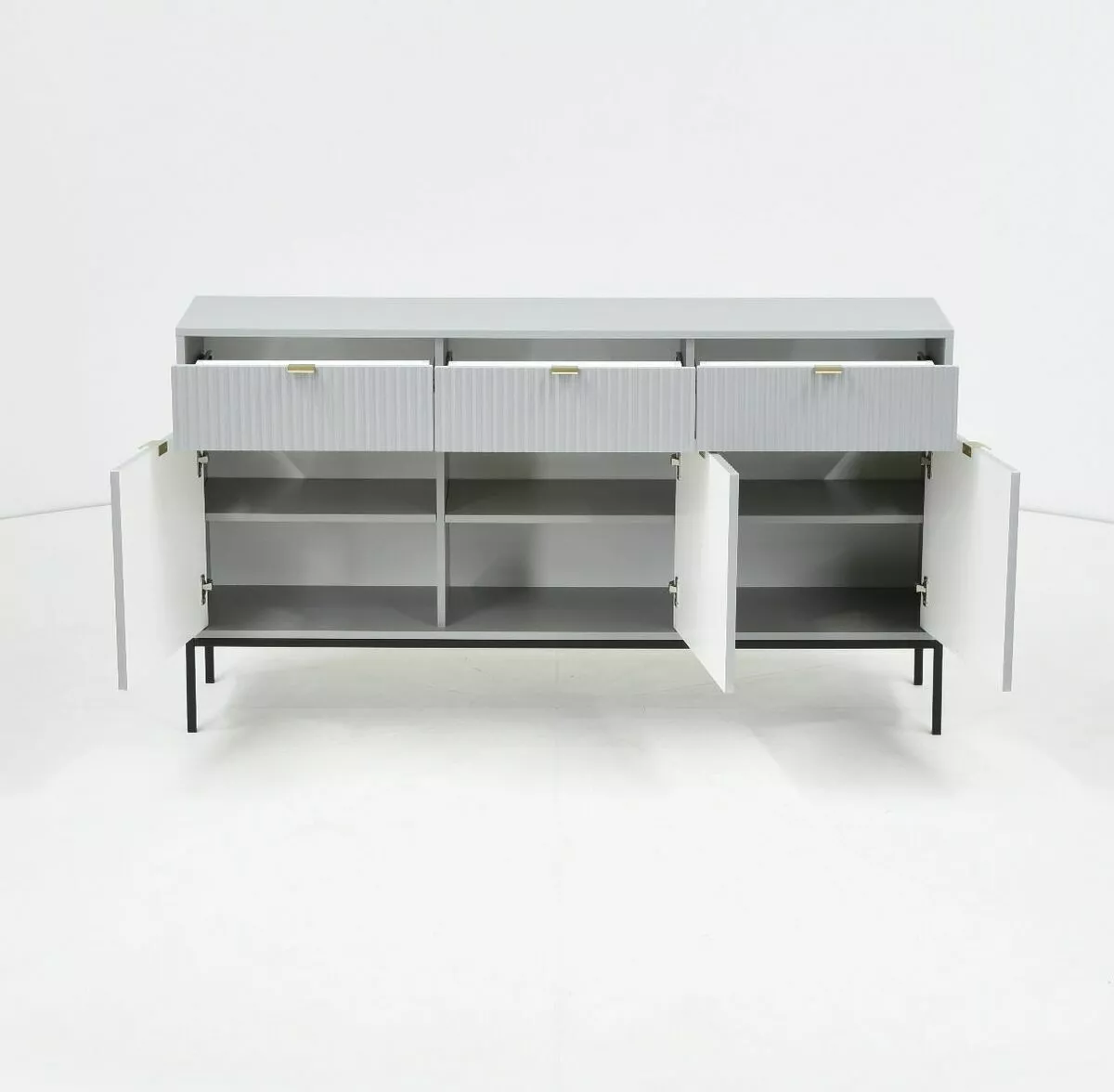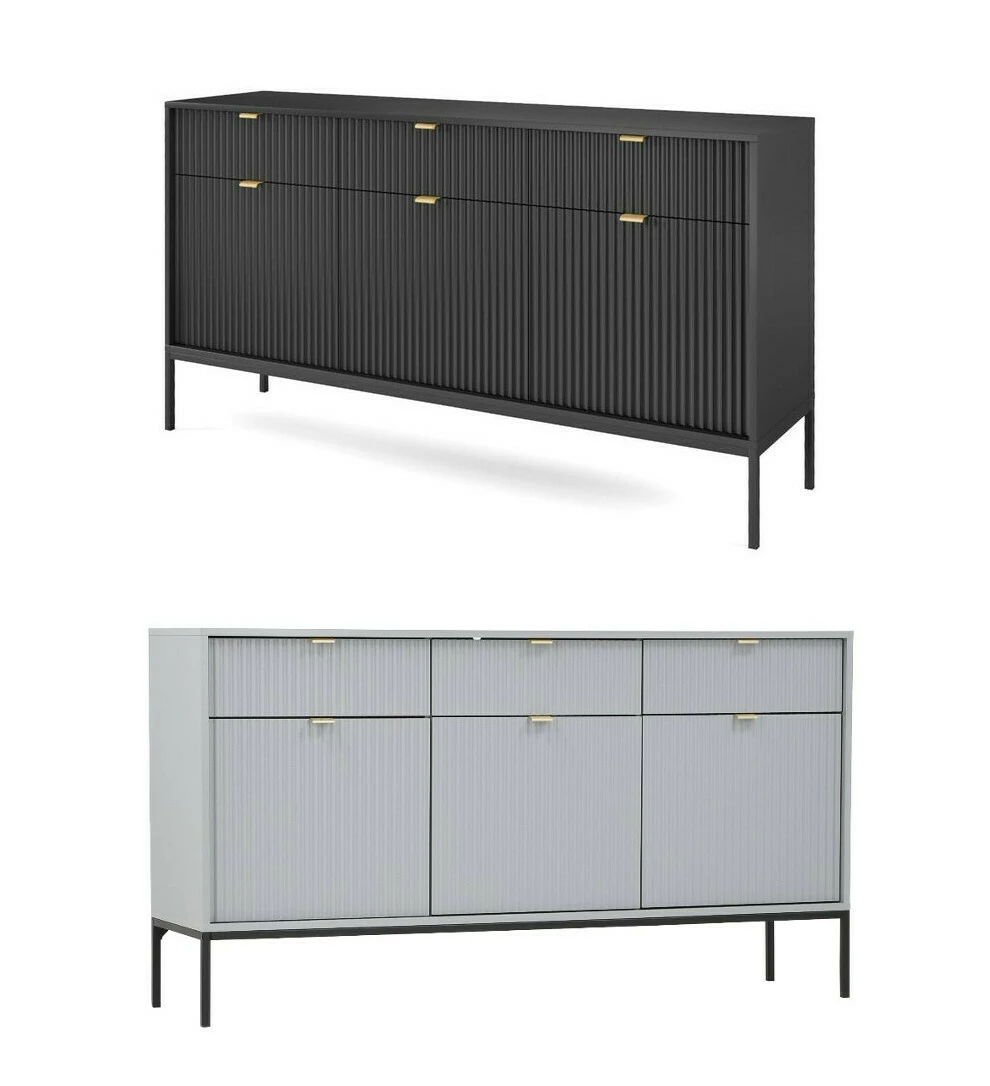 Tyylikkäässä ja sirossa Latte senkissä on runsaasti säilytystilaa kolmessa vetolaatikkossa sekä kolmessa säilytyskaapissa, joissa jokaisessa on välihylly. Etusarjoissa olevat urat antavat senkille kauniin, yksilöllisen ilmeen. Saatavana kahdessa tyylikkäässä värivaihtoehdossa.