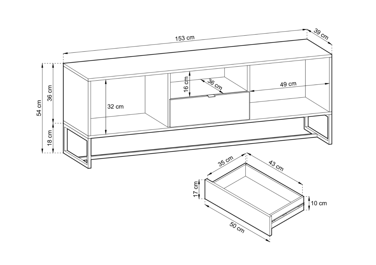 Tyylikäs tammen värinen Fore tv-taso. Tv-tasossa on 16 mm laminoitu kalustelevyrunko, ABS-reunanauha, mustat metallijalat sekä mustat metallivetimet. Tv-tasossa on kaksi kaappia, yksi vetolaatikko sekä yksi avohylly.