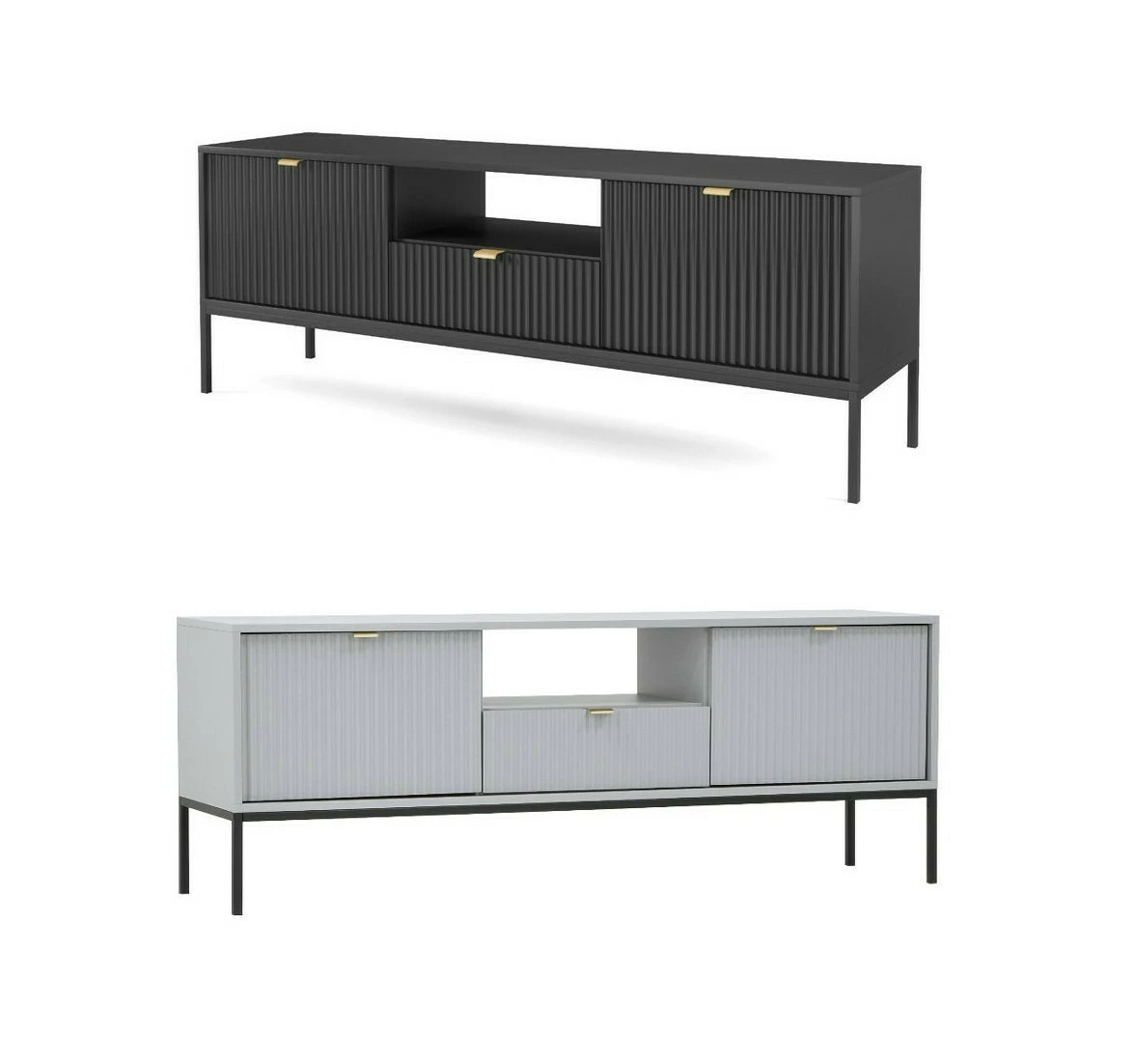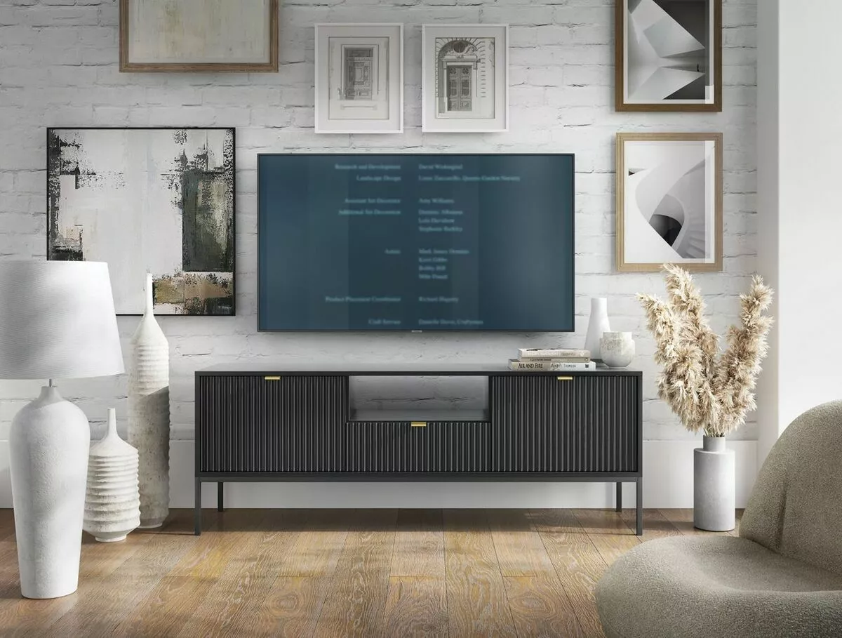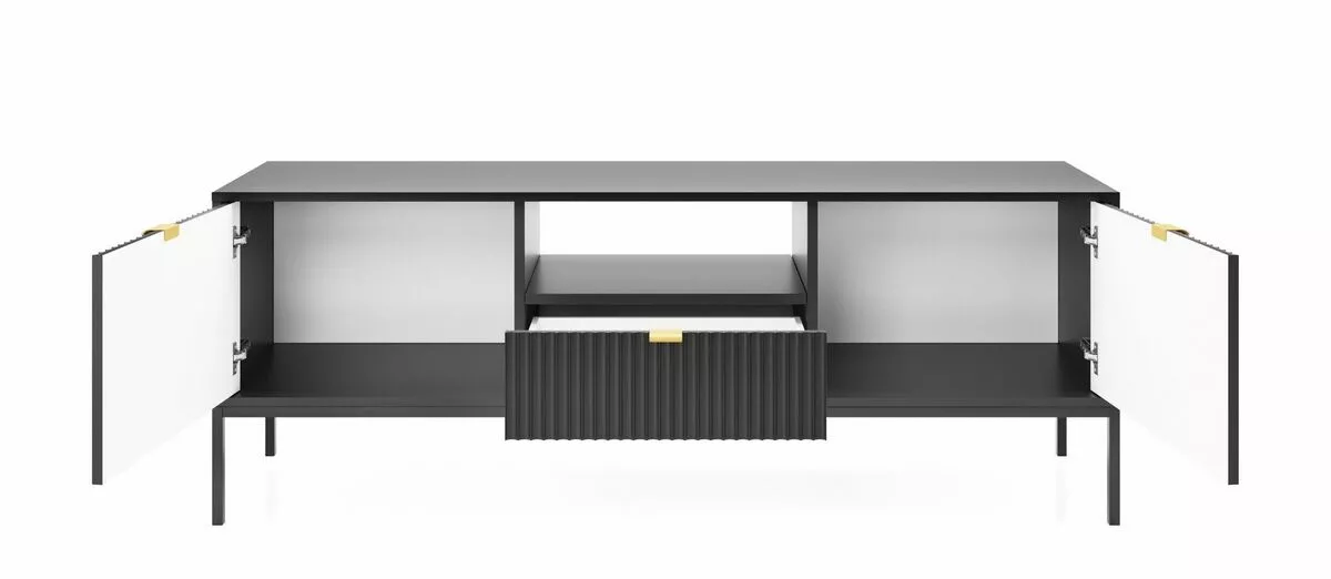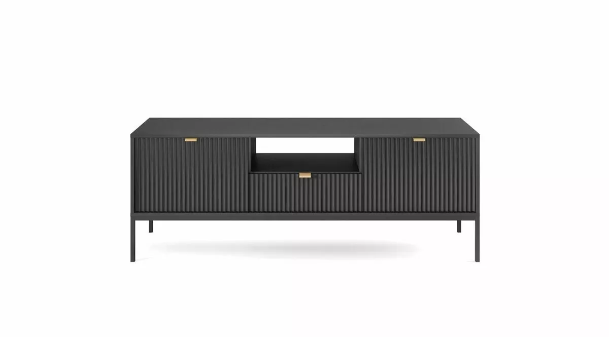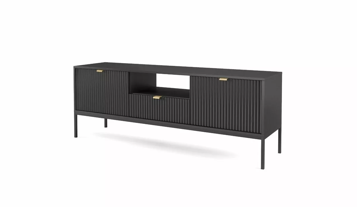 Tyylikkässä ja sirossa Latte tv-tasossa on vetolaatikko, avohylly ja kaksi säilytyskaappia. Etusarjoissa olevat urat antavat tv-tasolle kauniin, yksilöllisen ilmeen. Saatavana mustana tai harmaana.