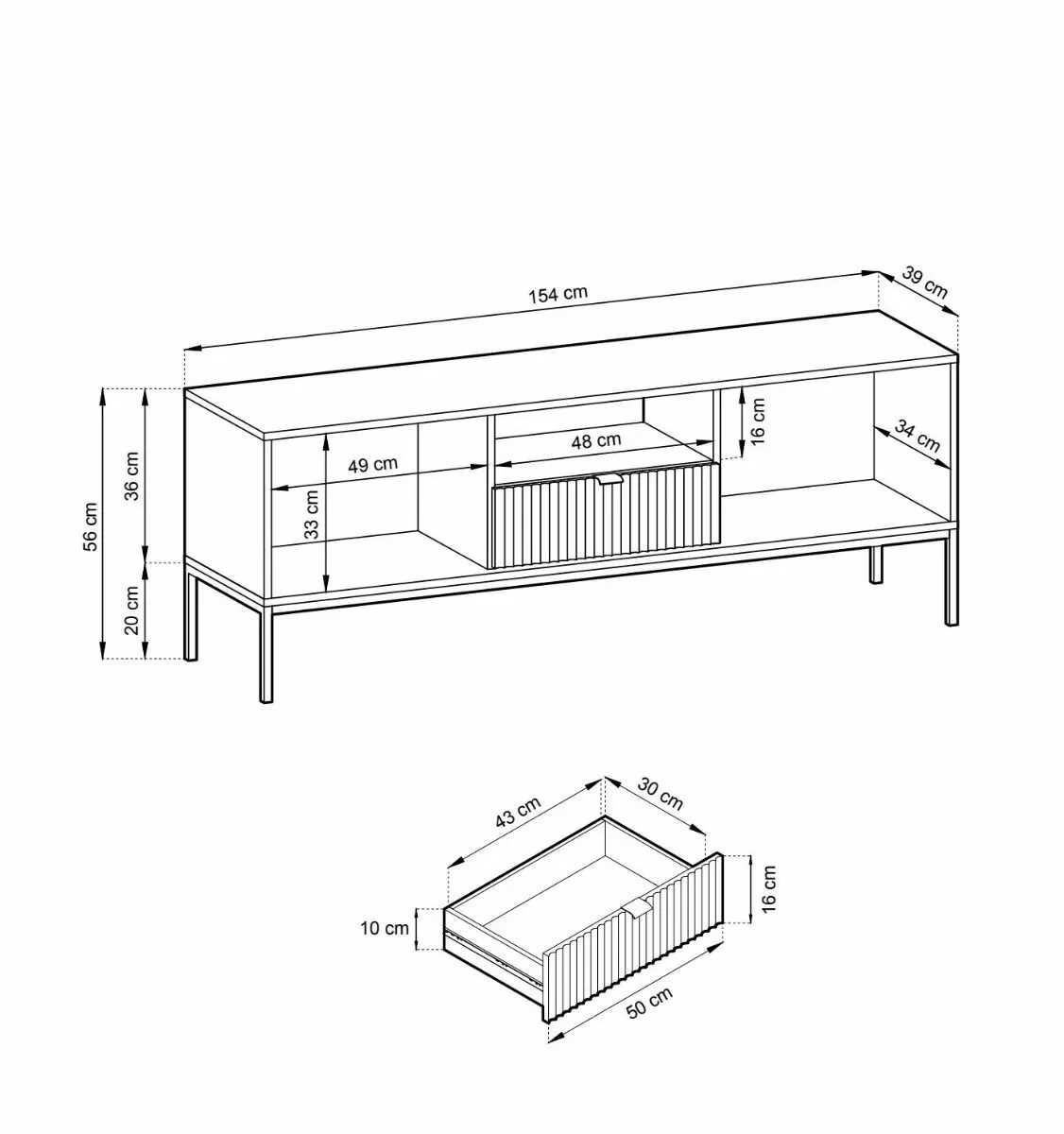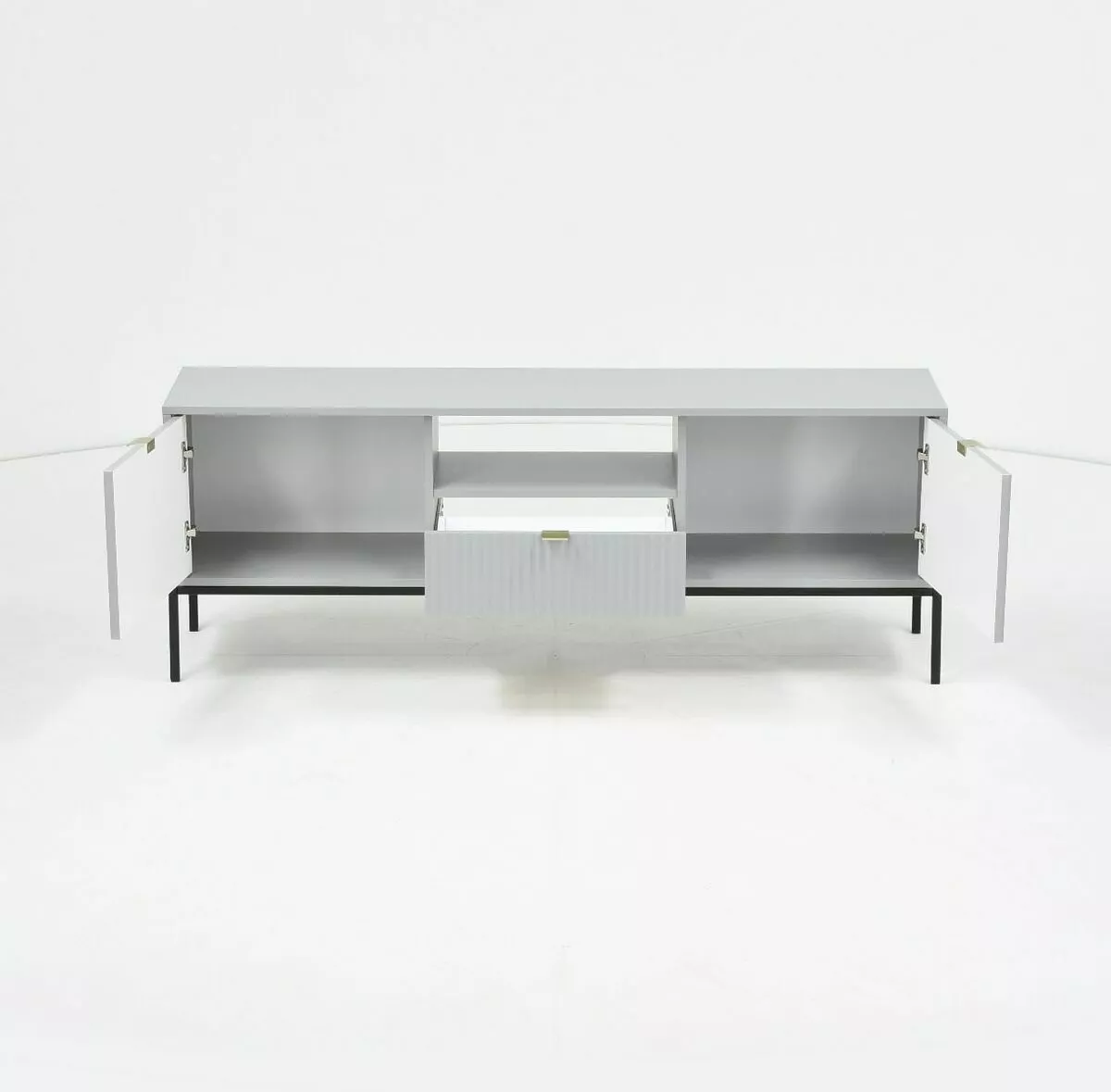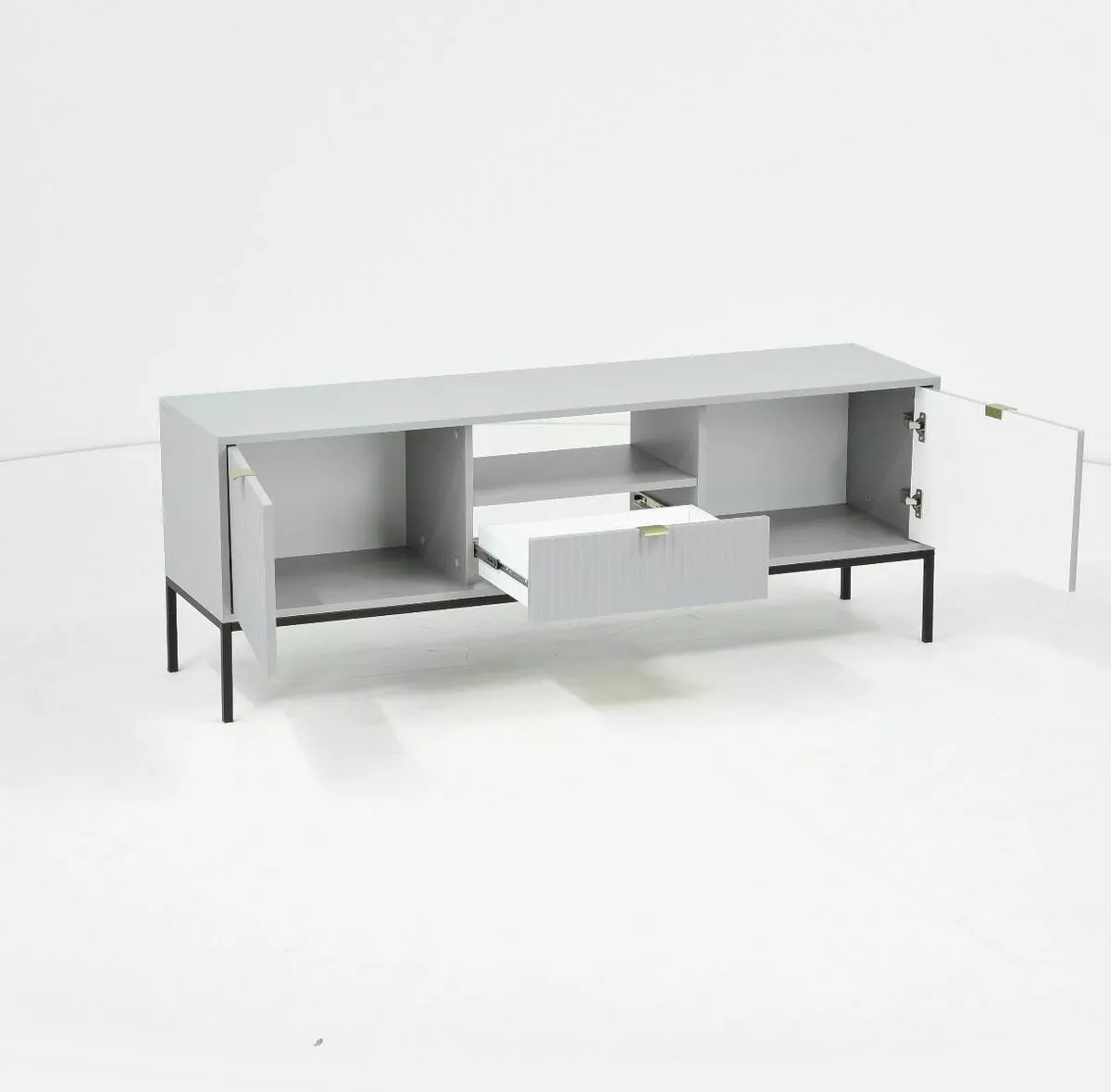 Tyylikkässä ja sirossa Latte tv-tasossa on vetolaatikko, avohylly ja kaksi säilytyskaappia. Etusarjoissa olevat urat antavat tv-tasolle kauniin, yksilöllisen ilmeen. Saatavana mustana tai harmaana.
