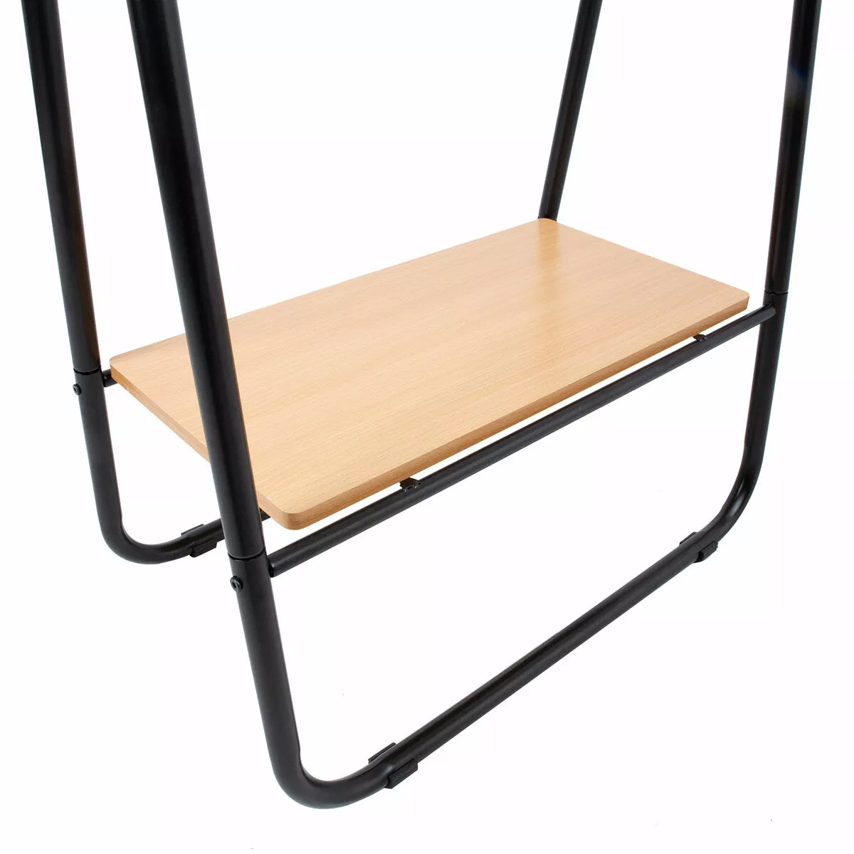 - Rekin yläosassa on puinen ripustuspuu vaatteiden ripustamisee